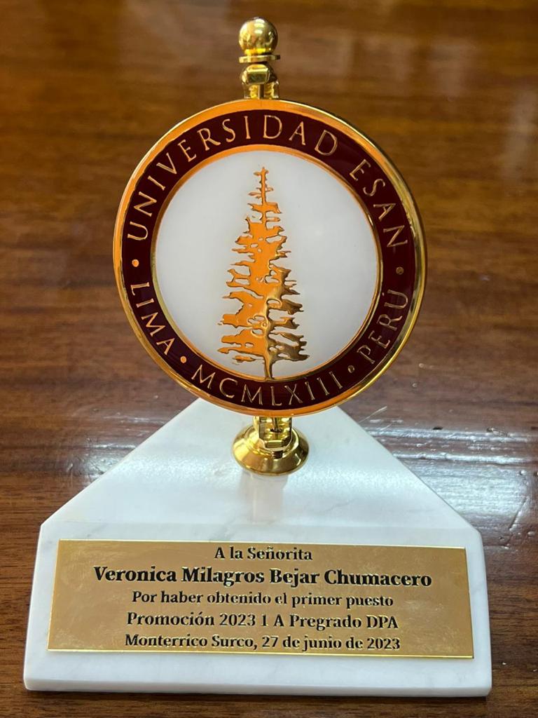 1er puesto promoción 2023 Bachiller en administración con mención en dirección de empresas en La Universidad ESAN.
