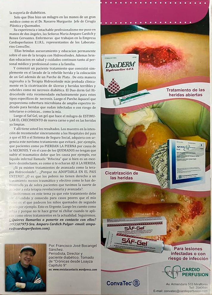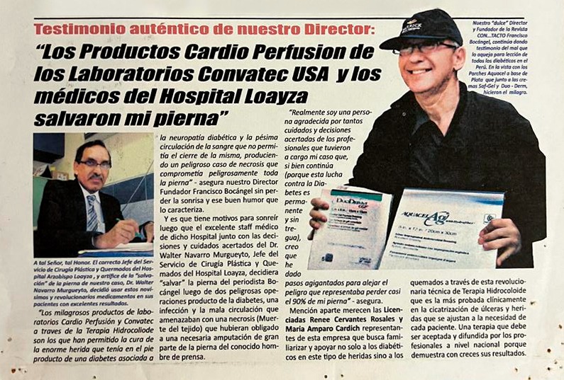 “LOS PRODUCTOS DE CARDIO PEFUSION DE LOS LABORATORIOS CONVATEC USA Y LOS MEDICOS DEL HOSPITAL LOAYZA SALVARON MI PIERNA”