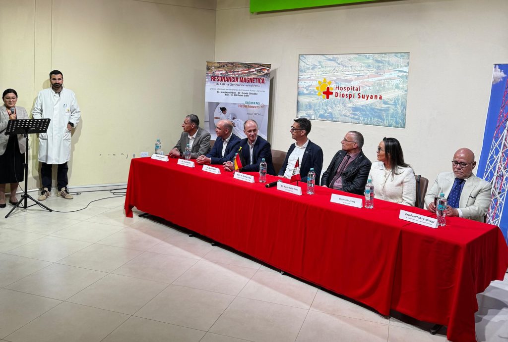 Este logro fue posible gracias a la donación de distinguidos científicos alemanes —Dr. Stephan Biber, Dr. David M. Grodzki y Prof. Dr. Michael Uder—, quienes desarrollaron la innovadora tecnología Magnetom Free y fueron galardonados con el Premio Alemán del Futuro 2023, consistente en 250.000 euros, entregado por el presidente federal de Alemania, Frank-Walter Steinmeier. En un gesto admirable, decidieron donar íntegramente el monto recibido para hacer realidad este resonador en beneficio de miles de pacientes peruanos.